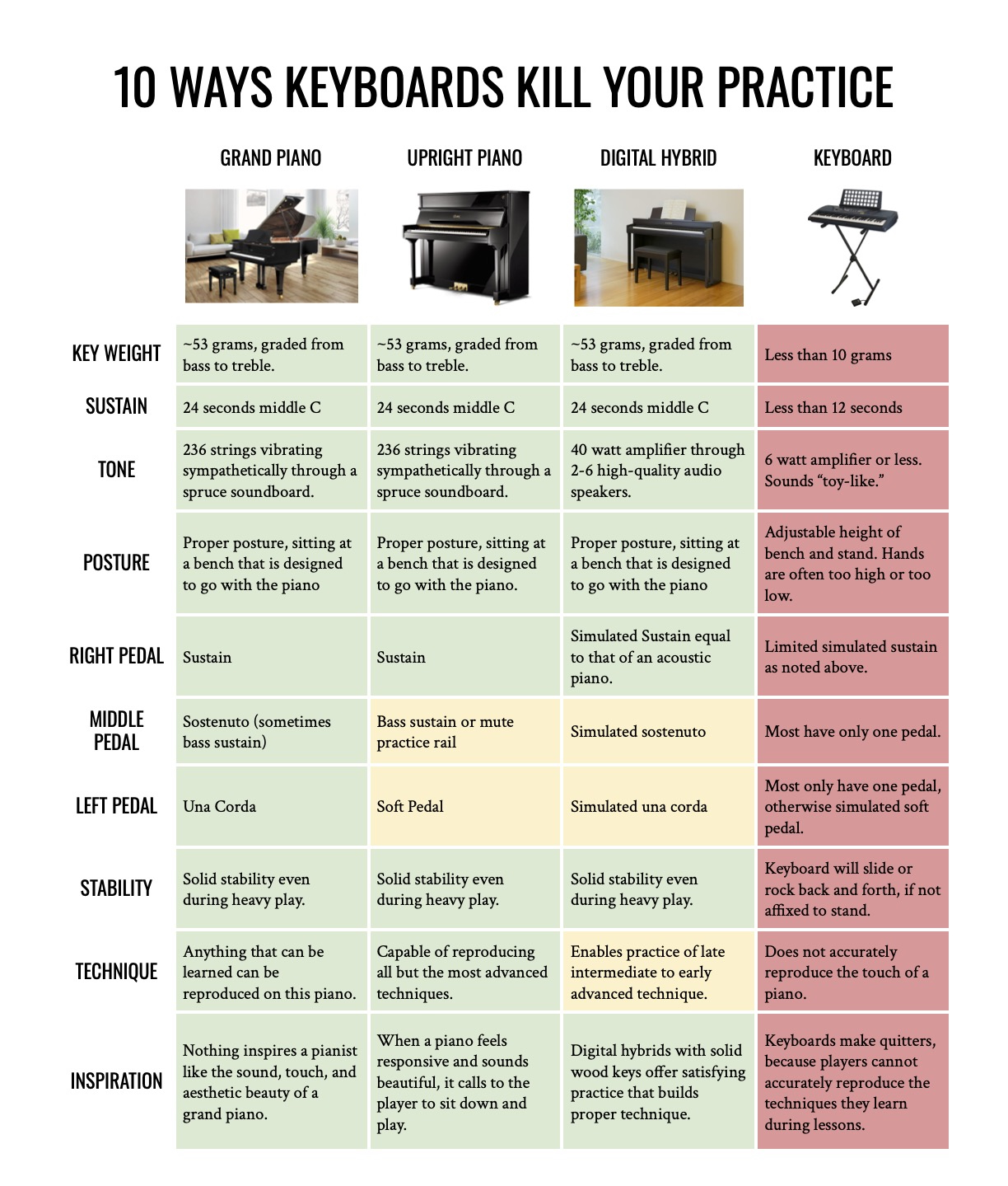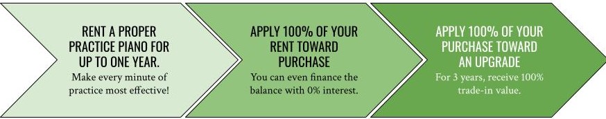 Parents have special concerns about making a piano investment, especially if they did not learn to play a musical instrument when they were kids. If you're here, it is because deep down you know that learning piano will be beneficial to your child. Learning piano has been shown to improve math and science skills, language development, enhance creativity, improves rhythm and coordination, reduces stress, and creates connections in the brain that prevent memory loss later in life...and the specific changes learning a musical instrument makes during brain development cannot be accomplished through any other activity! That's a lot of good reasons to learn piano. If you are not ready to purchase a piano, it's ok! Rent first and give your child the best chance for success, then upgrade when your confidence is higher.
